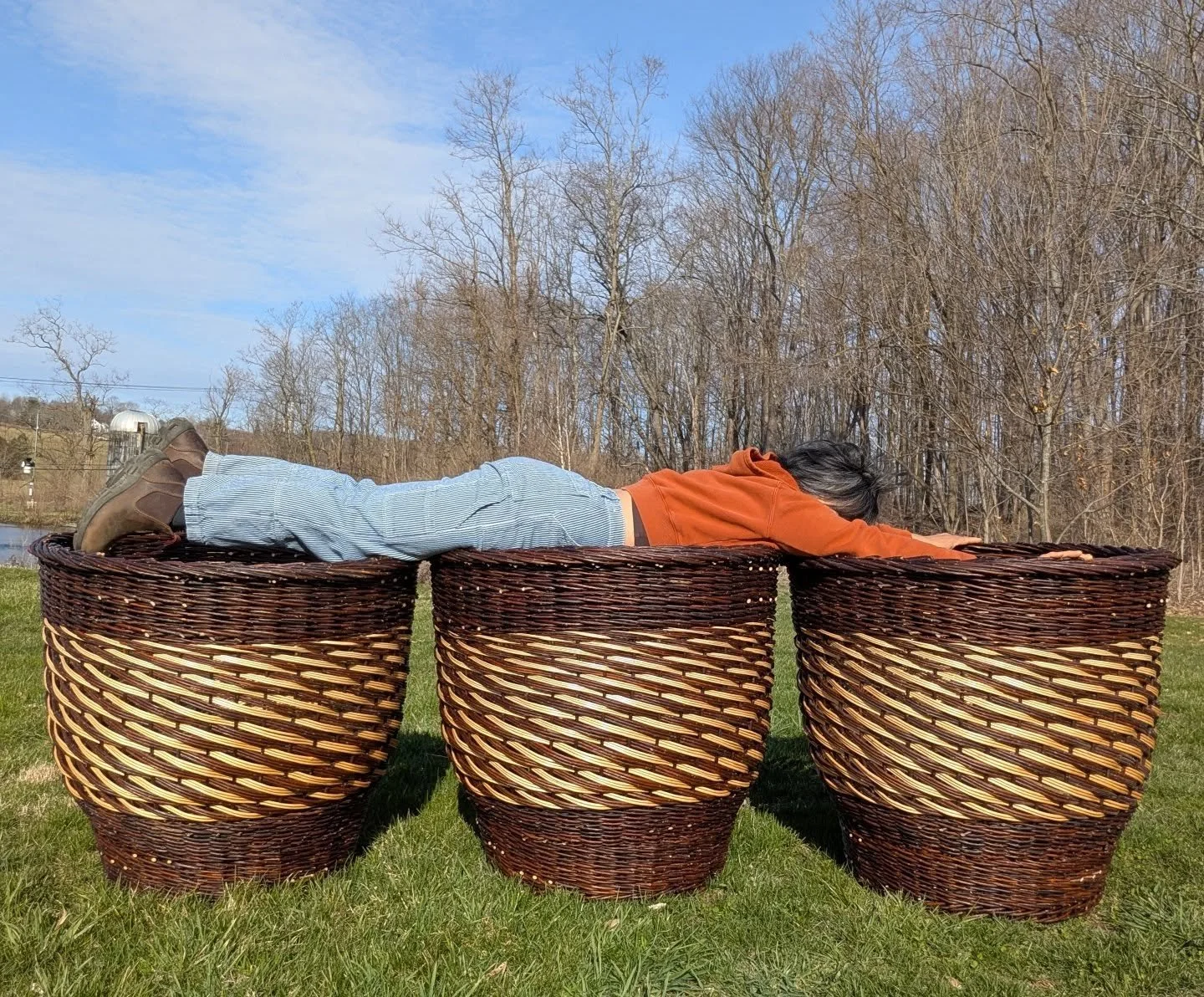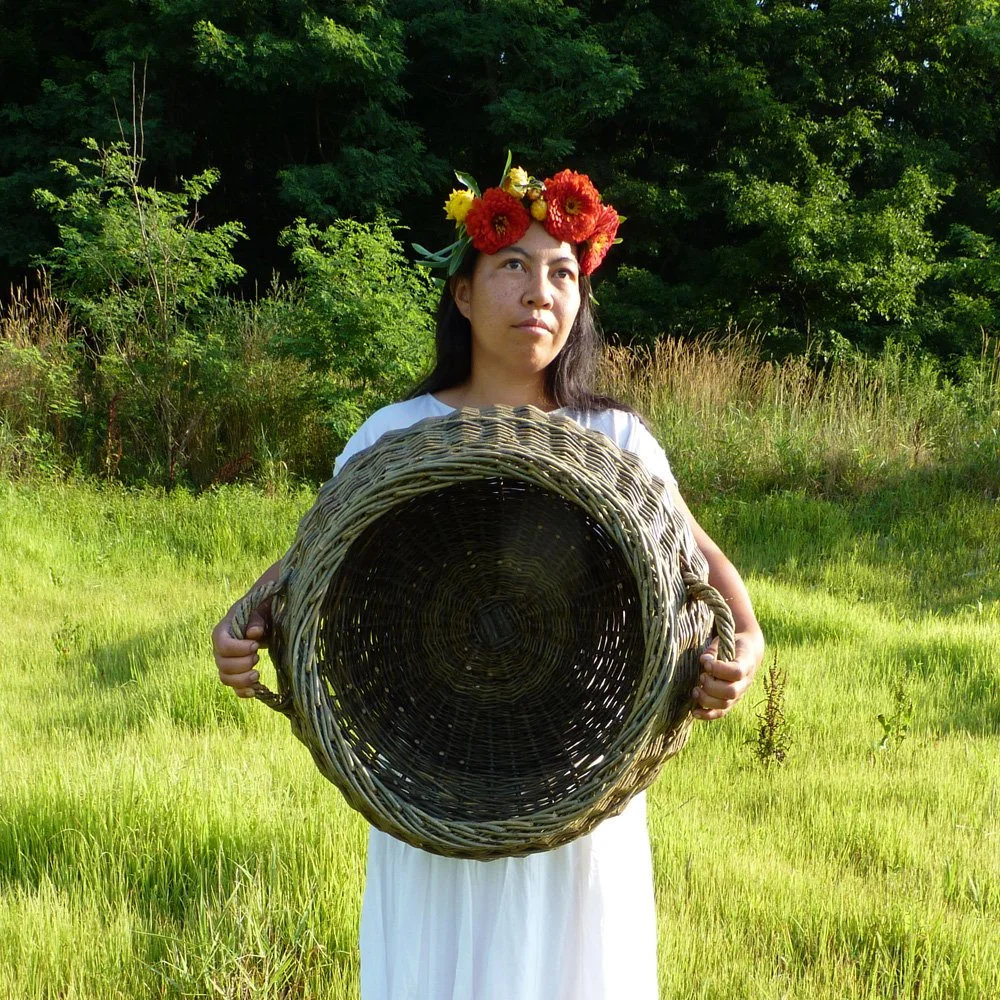 All baskets, and garden supports are woven with a combination of mostly home-grown and some bought-in willow, as well as locally harvested birch and hazel in partnership with the NY DEC. Find me on Instagram to keep up with my latest weaving projects. If you are interested in learning how to grow or weave with willow, see Workshops. If you’re interested in purchasing a basket, see Weavings. And if you have a question about my baskets, see the FAQs or contact me.